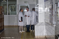 Am intrat în fabrică și am ajuns la primul punct, cel de siguranță. Aici ne-am echipat în: halate albe, bonetă (că firele din cap mai zboară și în vânt), acoperitori pentru încălțăminte, dopuri pentru urechi, ochelari de protecție și mănuși chirurgicale pentru domișoarele cu ojă pe unghii.
